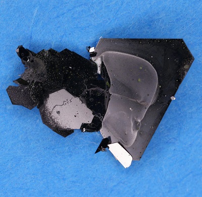 硫化ゲルマニウムは薄い金属結晶になります。結晶は層状構造をしており、機械的に容易にへき開面に沿って割ることができます。